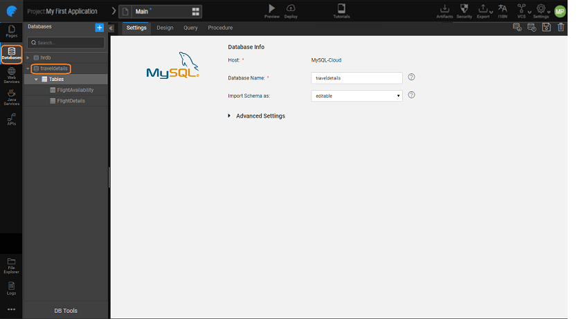 Apart from the basic Database settings like host details, schema name etc., WaveMaker provides some advanced database configuration options.
