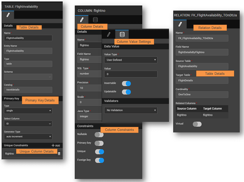 • If you select Insertable option alone, the column value will be inserted only at the time of creating a new record. The inserted value will not be updated at any point of time if the Updatable option is unchecked.