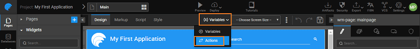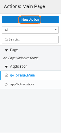 Navigation Action provides navigation capabilities to help in navigating from one page or view to another. By default, for every page added to the app, a navigation action is created with the name goToPage__<pagename>. You can choose to create a new Navigation Action.