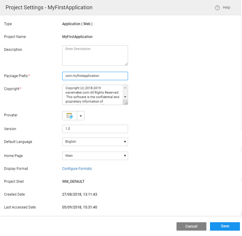 • Project Name non-editable field giving the name of the project.