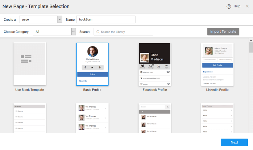 1. Create a page with basic profile template.
