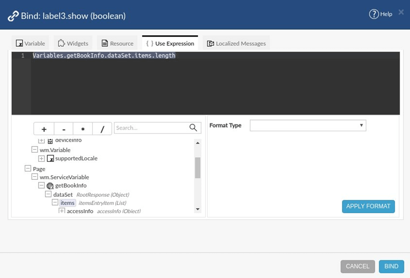 1. Drag and Drop a Label to the page, set Caption property to ‘Book Not found’. Bind the Show property this label such that this label is shown when the Variable does not return any books.
