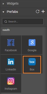 1. Drag and drop the Box OAuth Prefab on the canvas of the desired page of the application.