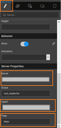 10. In the WaveMaker studio, click on Properties. Enter the necessary server properties such as Appid, Secret, and Page for the BOX prefab widget.