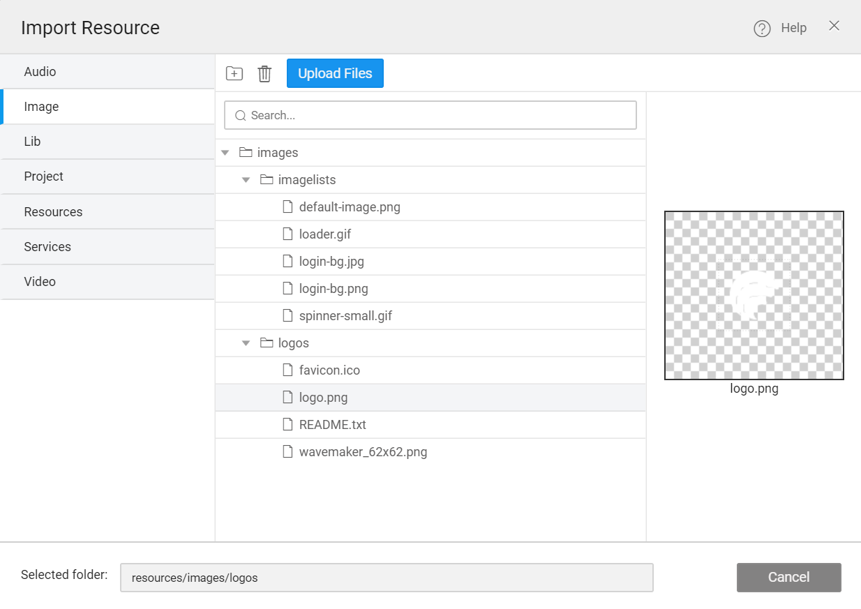 1. Navigate to Images -> logos directory -> logo.png. Alternatively, use the Search.