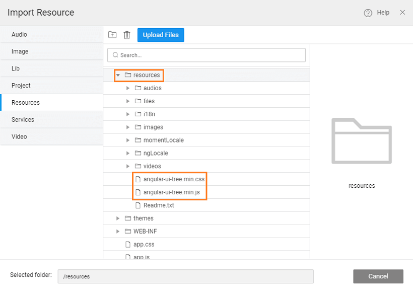 2. Import the css and js files to the resources folder, using the Import option from Main Menu.