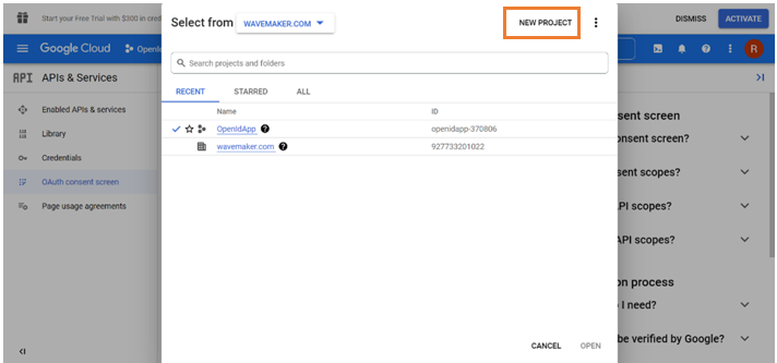 Below are steps to choose Google as Open ID provider in WaveMaker.