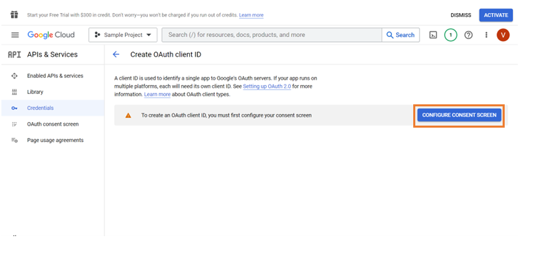 1. Set up user account in the Google Console. This is to create an OAuth application to fetch the Client ID and Client Secret.