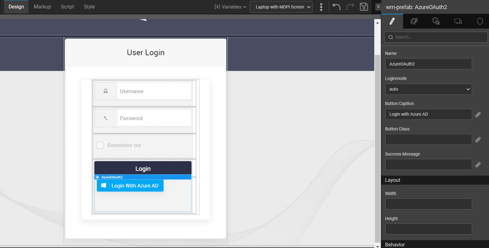1. Download the prefab from Git repository Azure OAuth Prefab and import it as a prefab on your WaveMaker Studio.