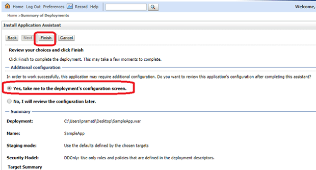 6. Select 'Yes, take me to the deployment's configuration screen' and click the Finish button.