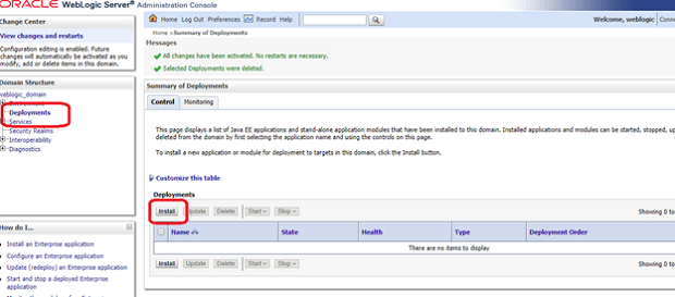 1. WebLogic Server needs to installed in the system. For installation, see Oracle WebLogic Server Installers.