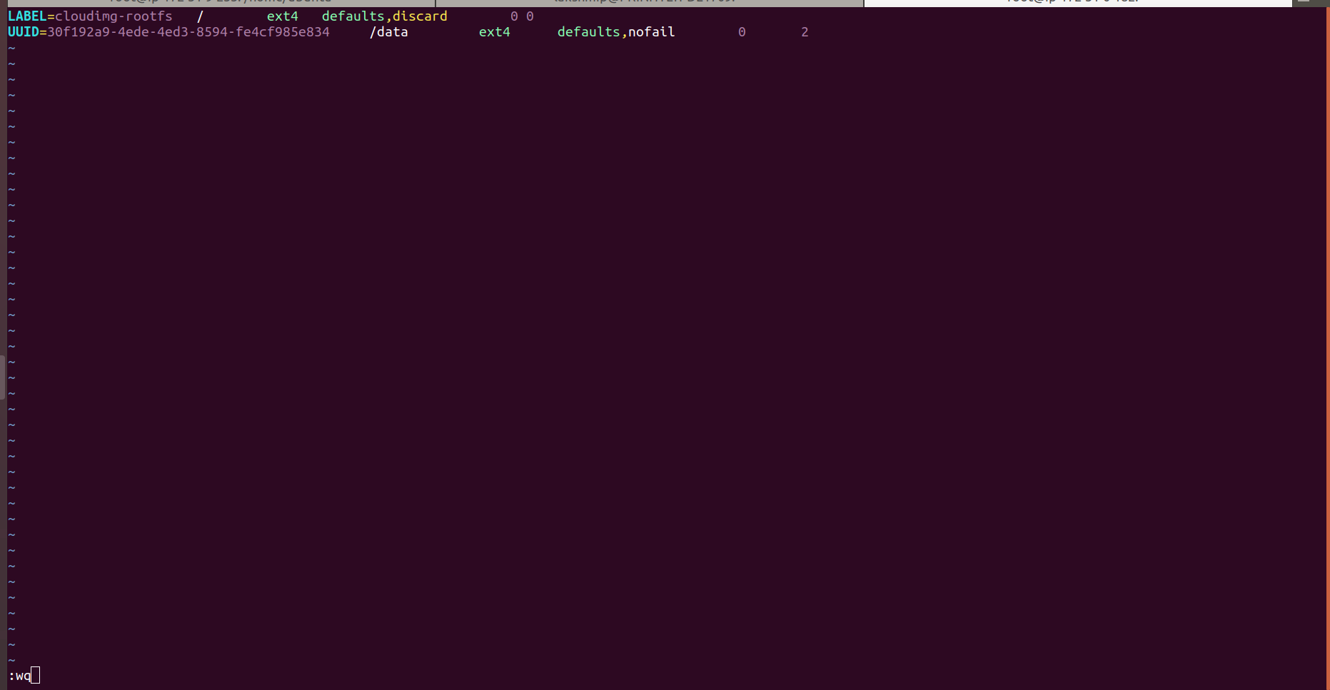 UUID=<block-device_1-UUID>    /wm-data     ext4   defaults ,nofail  0  2