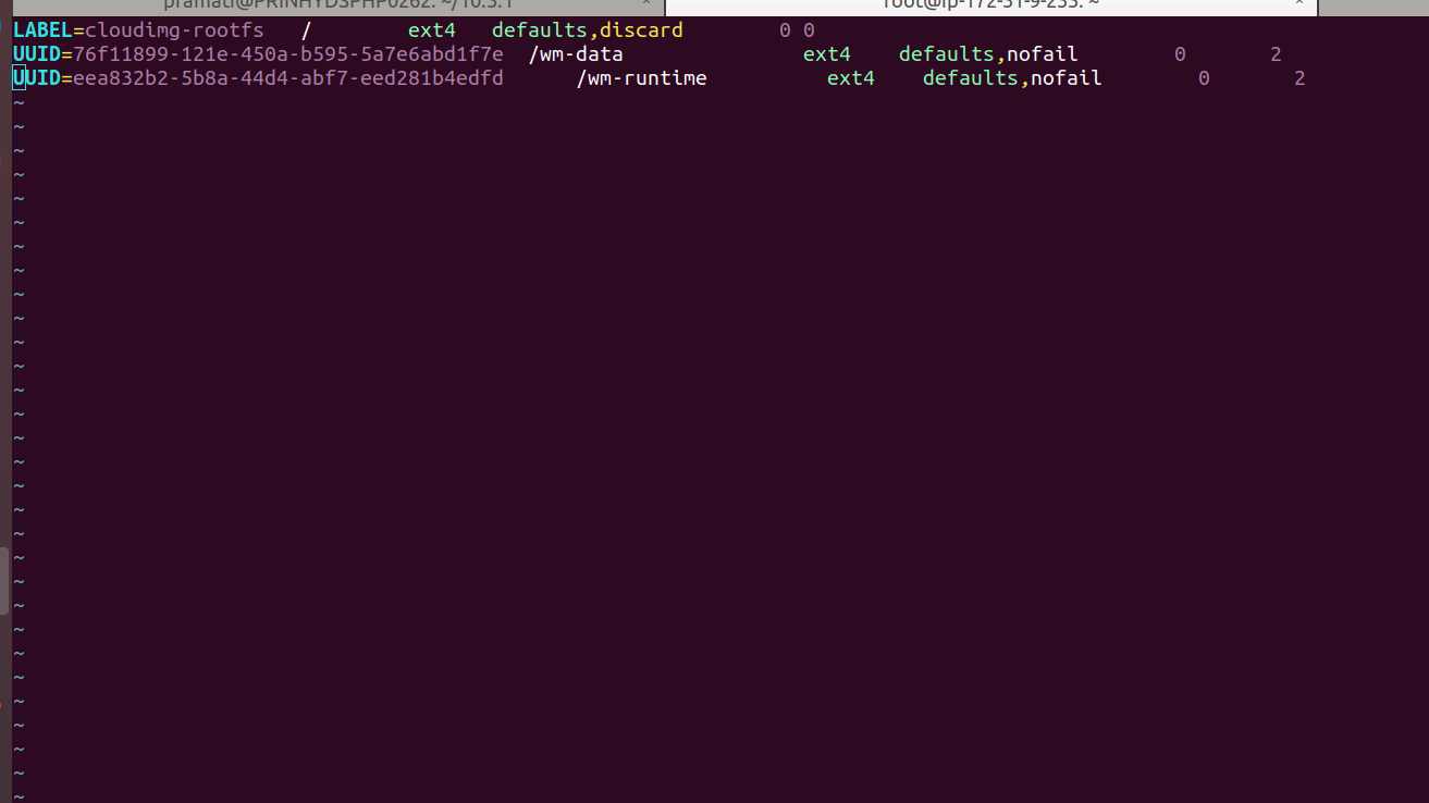 UUID=<block-device_2-UUID> /wm-runtime ext4 defaults ,nofail 0 2