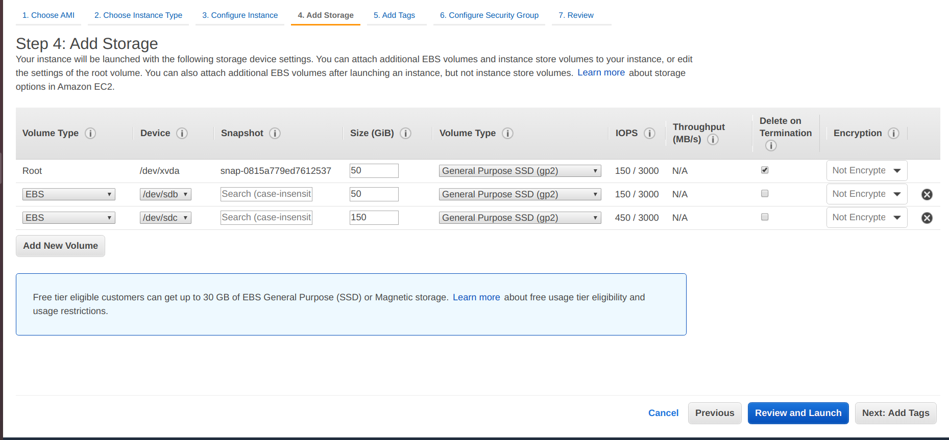 • Add storage 100 GiB for the root volume.