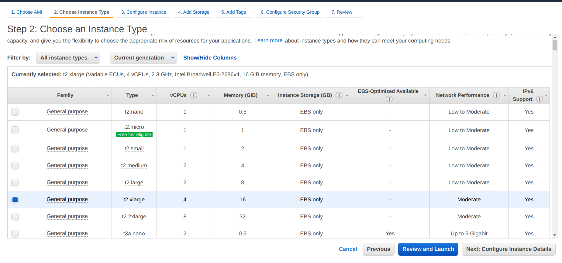 • Choose 16 GiB memory instance types from desired family and type.