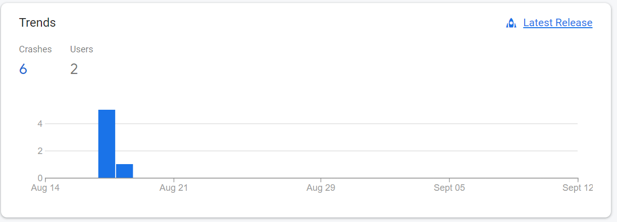 • The dashboard will show a list of recent crashes, with information such as the number of affected users, the issue's impact, and a brief description of the error.