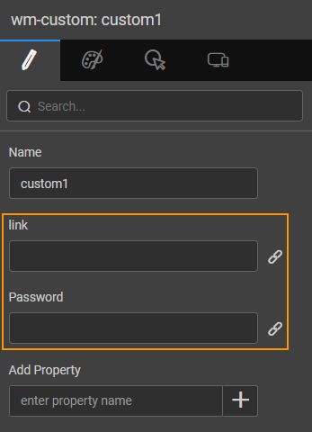 <wm-custom name="custom1" linkparam="bind:Variables.link.dataSet.dataValue" passwordparam="bind:Variables.pdfpassword.dataSet.dataValue"></wm-custom>